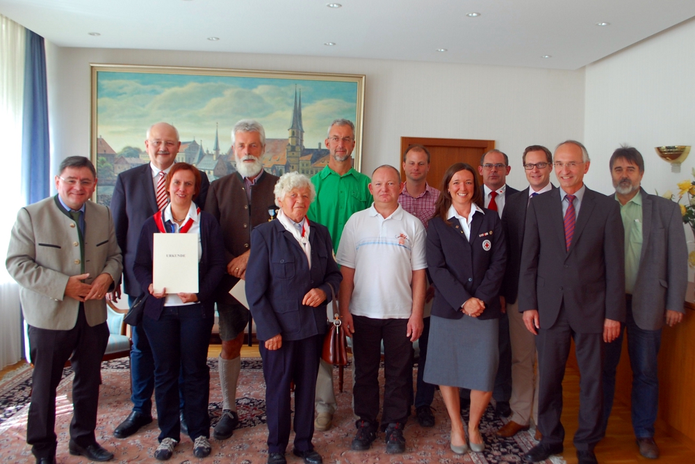 25. Juni 2015 Drei Aktive unserer Ortsgruppe erhielten eine hohe staatliche Ehrung aus den Händen von Landrat Erwin Schneider. Für 40 aktive Dienstjahre im Bayerischen Roten Kreuz wurde Günther Sixt mit dem Ehrenzeichen am Bande des Freistaates Bayern in Gold...