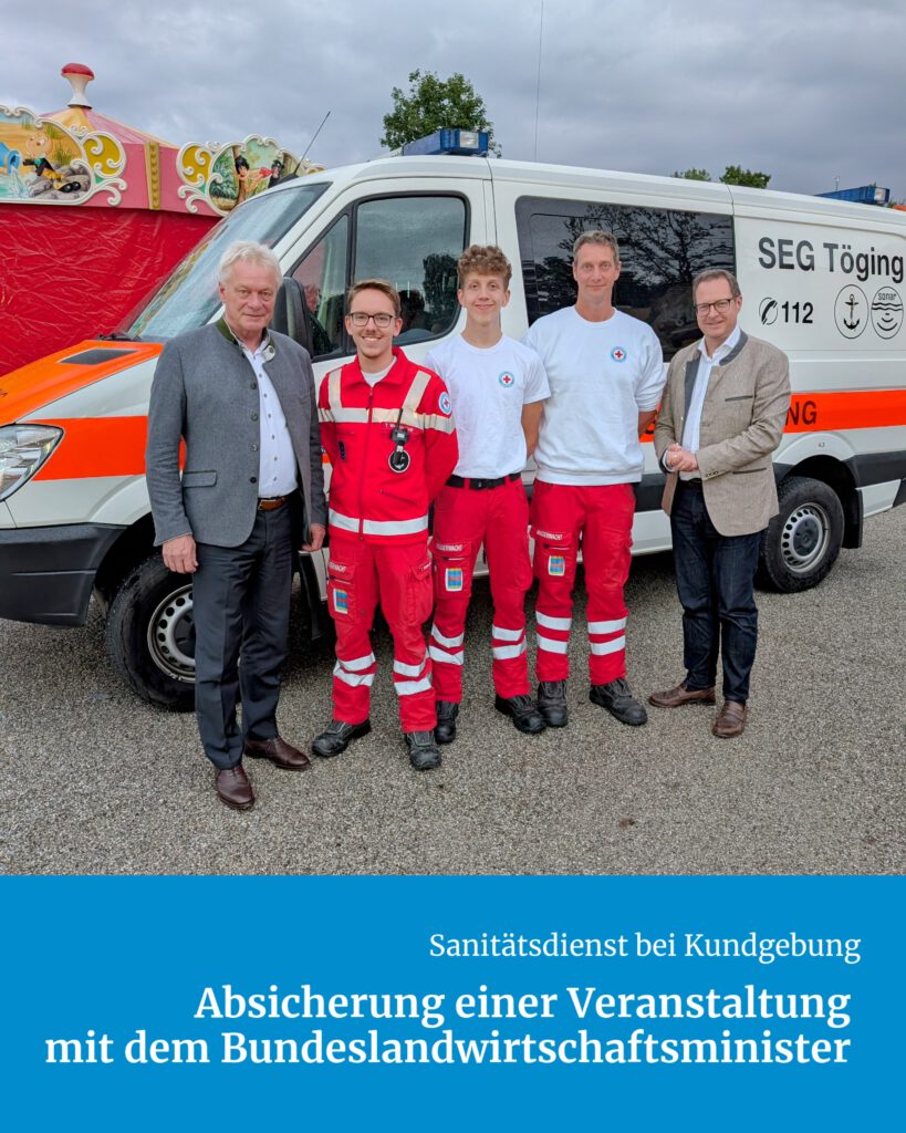 Die traditionell vor dem Start des Töginger Volksfestes stattfindende politische Kundgebung wurde auch in diesem Jahr von den Sanitätern der Wasserwacht Töging-Winhöring abgesichert.