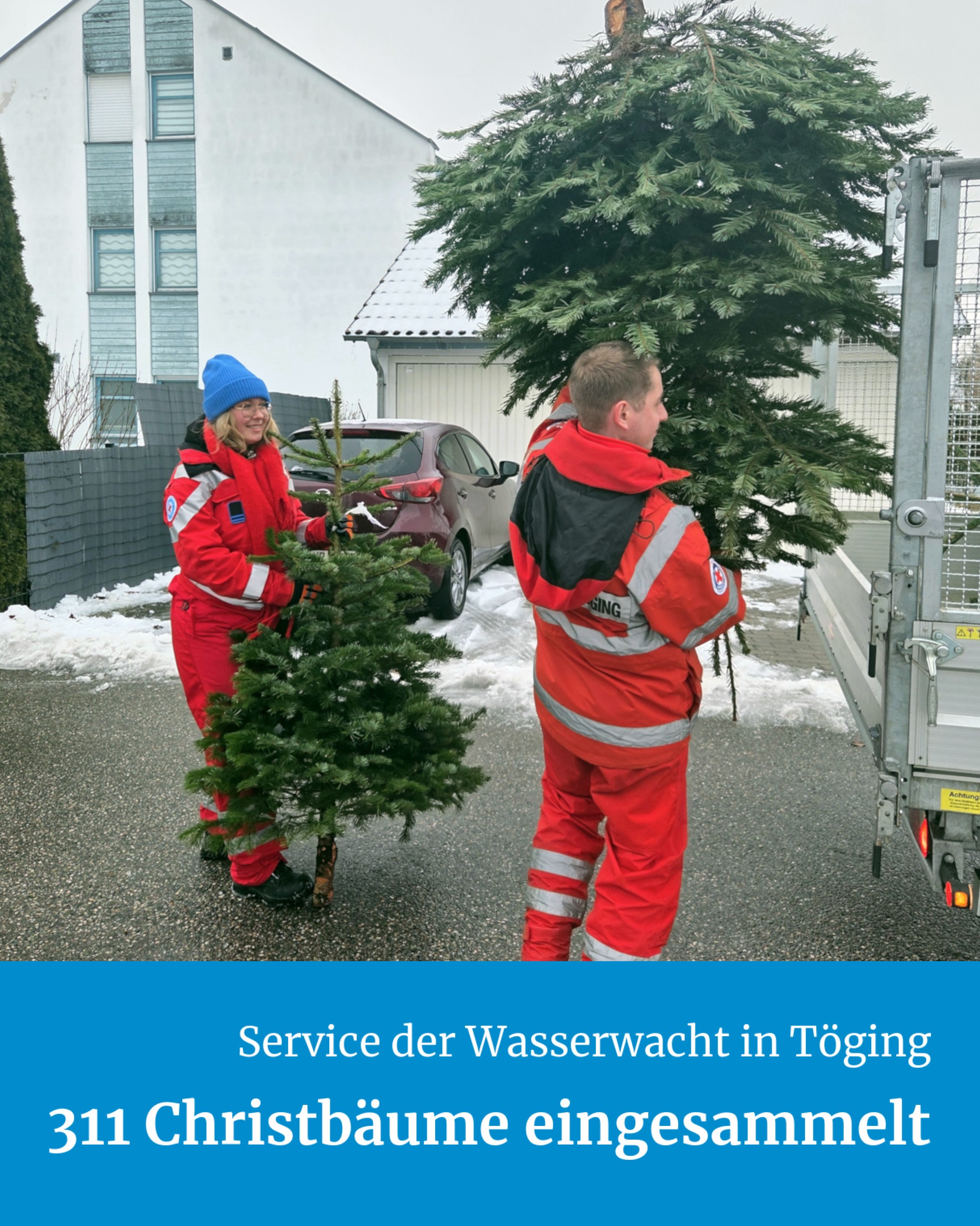 293 Tannen waren angemeldet worden, 311 alte Christbäume sind schließlich zusammen gekommen – die Christbaumsammlung 2026 der Wasserwacht in Töging war wieder ein voller Erfolg. Was 2017 als spaßige Idee begann, ist mittlerweile aus dem Stadtleben nicht mehr wegzudenken.